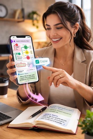 Você está a um clique de saber exatamente o que dizer quando o cliente fica indeciso, some ou pergunta o preço — é só copiar e colar!